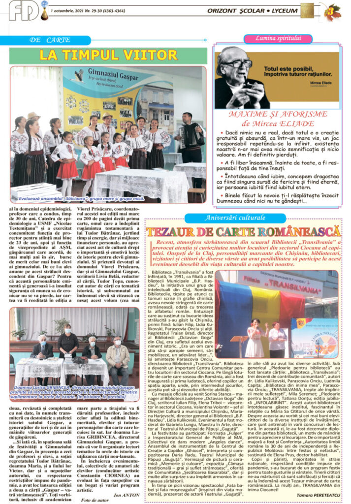 ORIZONT ȘCOLAR* LICEUM: ora de literatură; să scriem și să vorbim corect românește; dialogul generațiilor