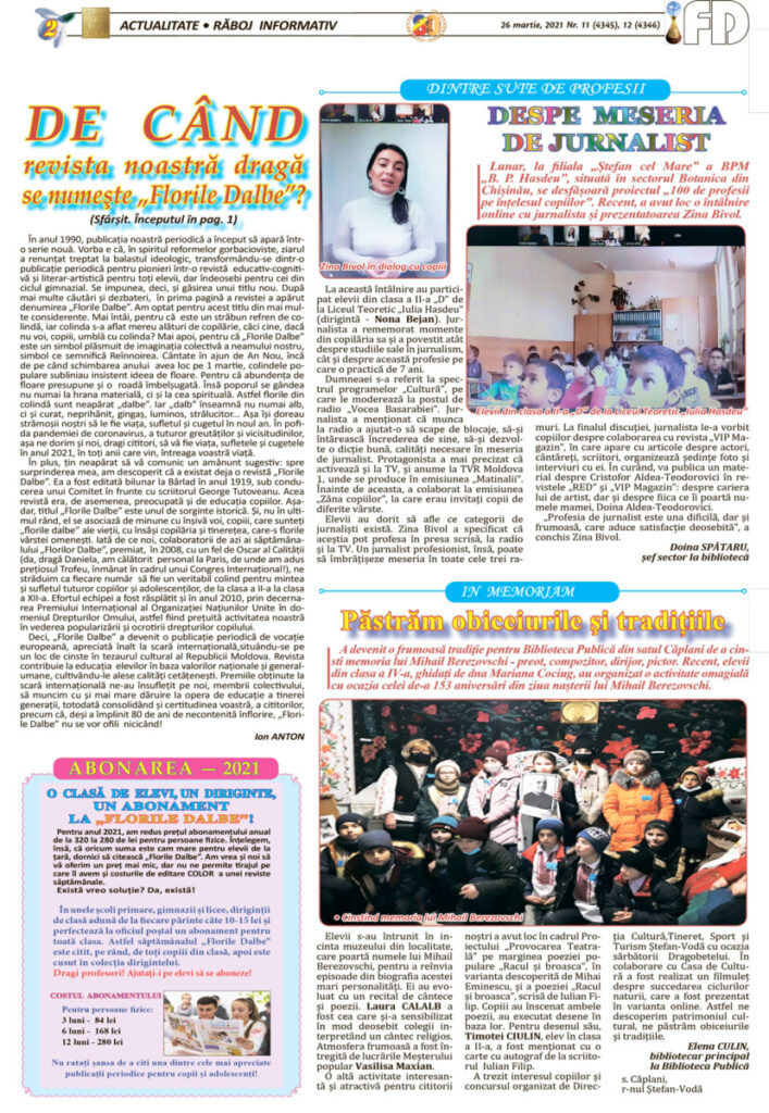 DE CÂND revista noastră dragă se numește „Florile Dalbe”?