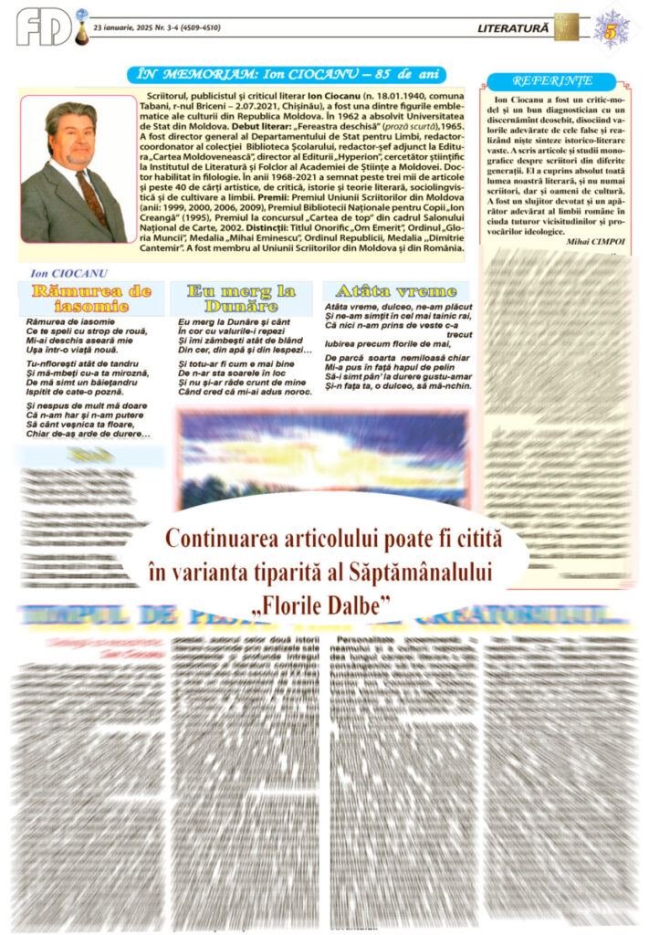 IN MEMORIAM: Ion CIOCANU – 85 de ani