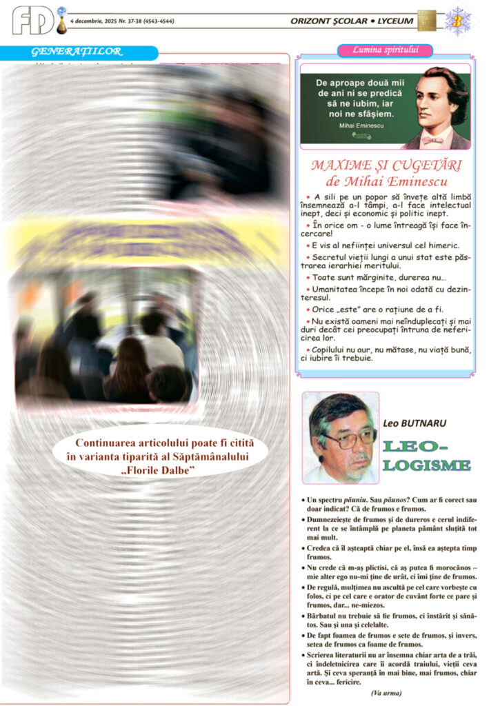 ORIZONT ȘCOLAR* LICEUM: ora de literatură; să scriem și să vorbim corect românește; dialogul generațiilor