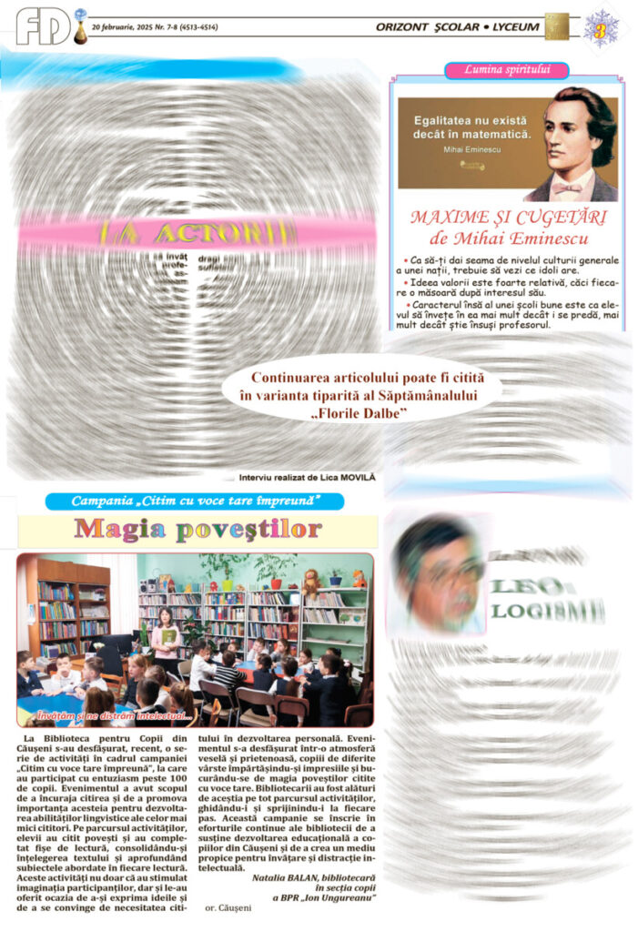 ORIZONT ȘCOLAR* LICEUM: ora de literatură; să scriem și să vorbim corect românește; dialogul generațiilor