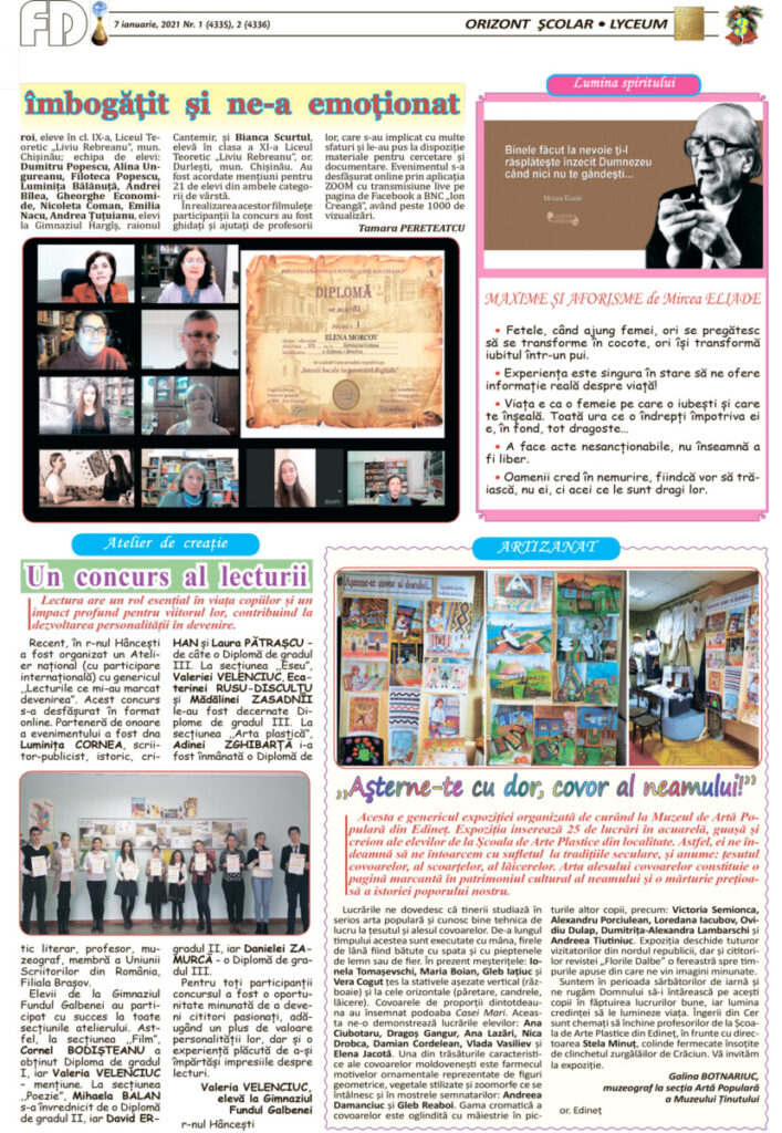 ORIZONT ȘCOLAR* LICEUM: ora de literatură; să scriem și să vorbim corect românește; dialogul generațiilor