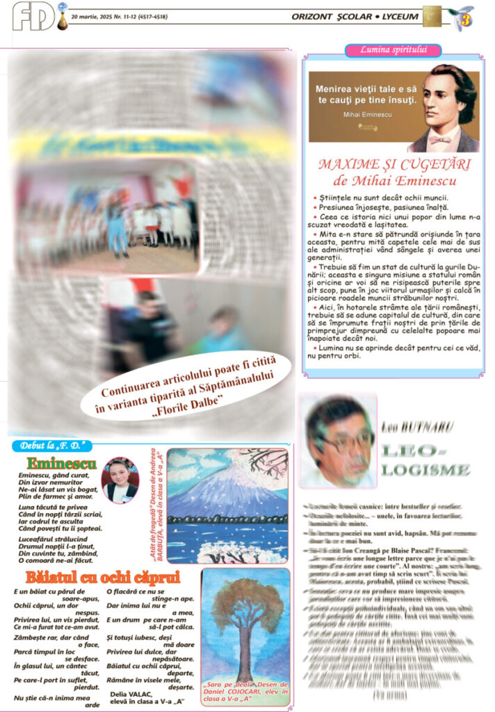 Anul Eminescu este marcat de elevi în fiecare zi…
