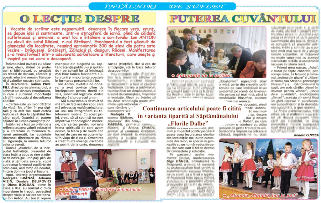 ORIZONT ȘCOLAR* LICEUM: ora de literatură; să scriem și să vorbim corect românește; dialogul generațiilor