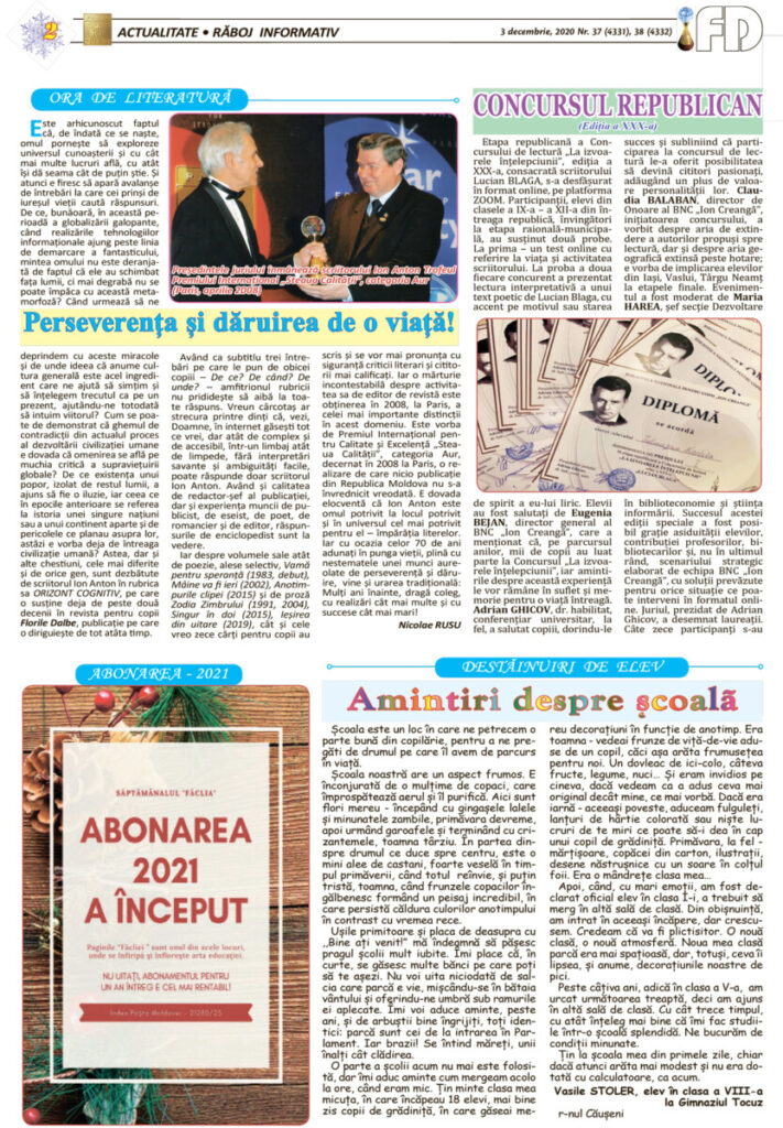 ACTUALITĂȚI * RĂBOJ INFORMATIV: evenimente din educație; știri, reportaje din viața elevilor