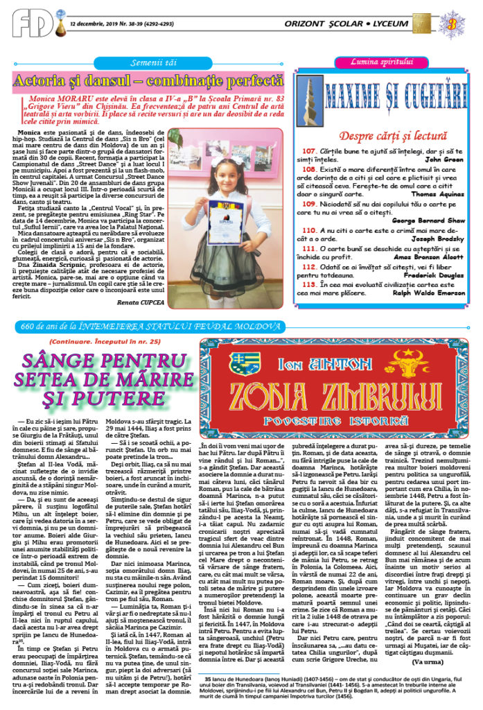 ORIZONT ȘCOLAR* LICEUM: ora de literatură; să scriem și să vorbim corect românește; dialogul generațiilor