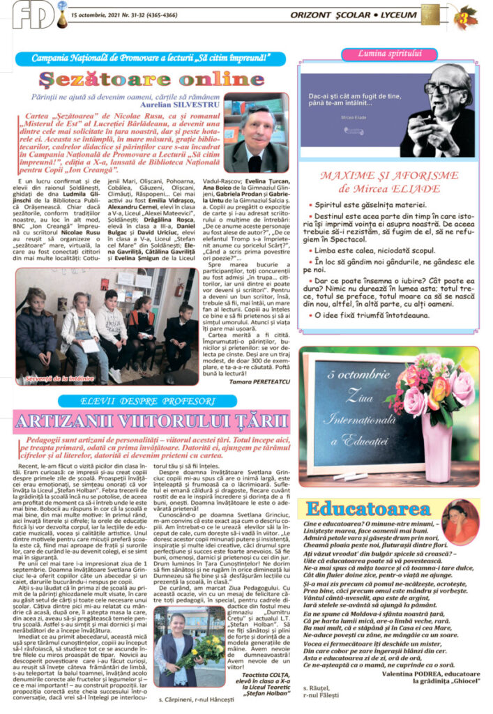 ORIZONT ȘCOLAR* LICEUM: ora de literatură; să scriem și să vorbim corect românește; dialogul generațiilor